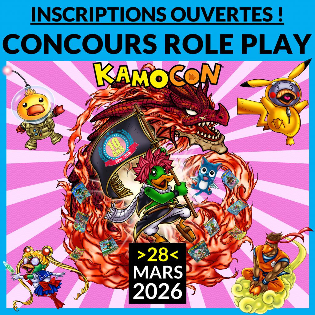 Avec les concours des salons Kamo Polis, Kamo Con et Kamo Play, notre petit caneton organise 3 concours Cosplay et 3 concours Roleplay chaque année.